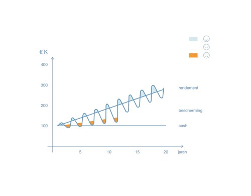 Ook met een beleggingsplan zet u maandelijks een bepaalde som opzij. U bouwt er geen huis mee op maar wel een extra spaarpot om later de dingen te kunnen doen die u wil doen. Een extra vermogen naast uw wettelijk pensioen. De dag waarop uw professioneel inkomen wegvalt, kunt u dankzij dat vermogen blijven genieten.